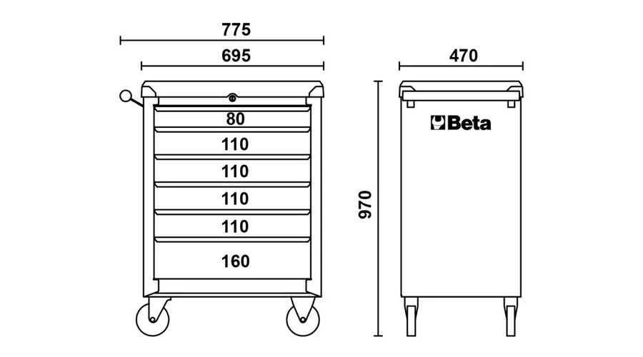 BETA BW C04BOX-A VU Worker 6 fiókos szerszámkocsi 196 darabos szerszámkészlettel